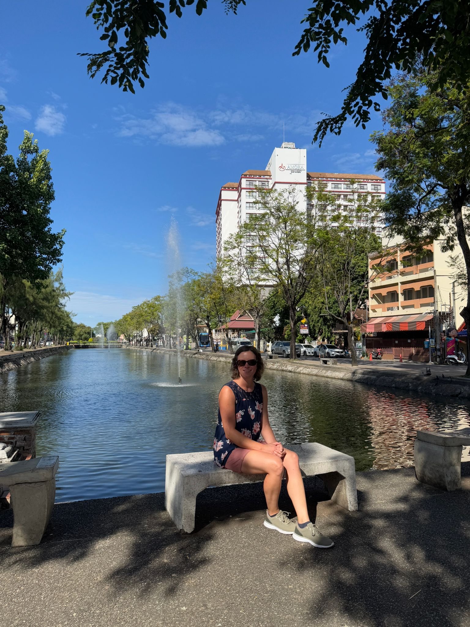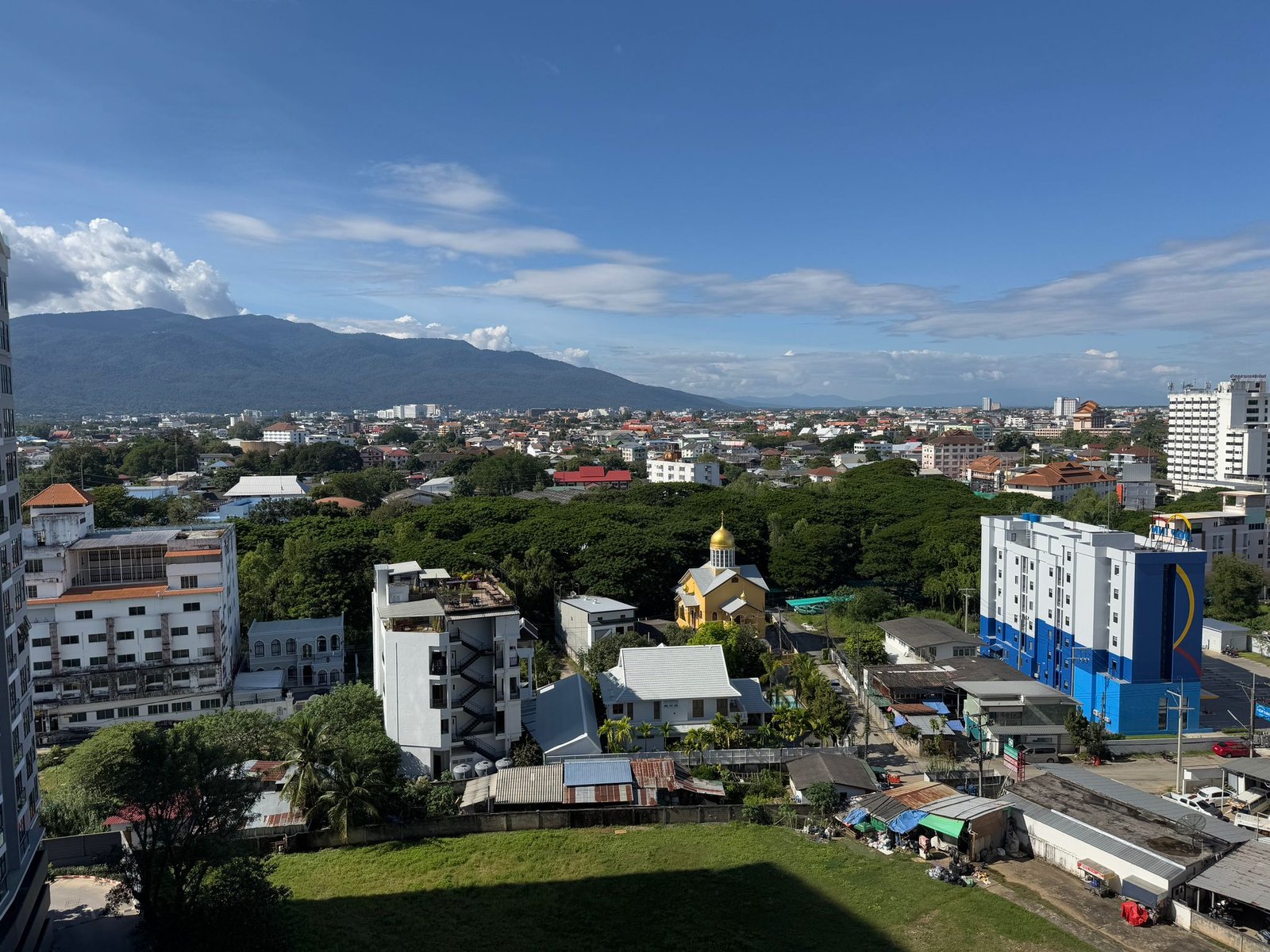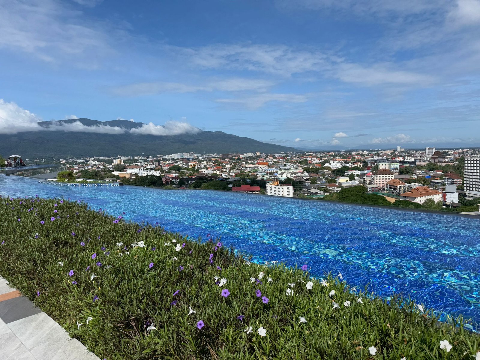 Chiang Mai war die Hauptstadt des ehemaligen Königreichs Lanna und wurde 1296 von König Mangrai gegründet. Die Stadt war über 400 Jahre lang das politische, kulturelle und wirtschaftliche Zentrum des Nordens und ist bis heute eine wichtige Metropole in Nordthailand. Nun sind wir schon seit über einer Woche hier. Die Stadt fühlt sich ganz anders an als Bangkok oder die Orte an der Küste. Chiang Mai ist ruhiger, grüner und weitläufiger. Obwohl es sehr international ist und man Menschen aus vielen Ländern trifft, hat die Stadt eine entspannte Atmosphäre. Zwischen Tempeln, Märkten und kleinen Straßen mit Cafés entsteht ein Alltag, der sich gleichzeitig vertraut und aber neu anfühlt. Unsere Anreise aus Koh Chang war dennoch ein kleiner Kraftakt. Für die gut tausend Kilometer per Flugzeug brauchten wir am Ende elf Stunden. Die erste Woche wohnen wir in einer großen Apartmentanlage mit Pool in der 17. Etage. Dort oben über der Stadt zu schwimmen hat etwas Besonderes und der Blick über Chiang Mai beeindruckt uns jedes Mal aufs Neue.