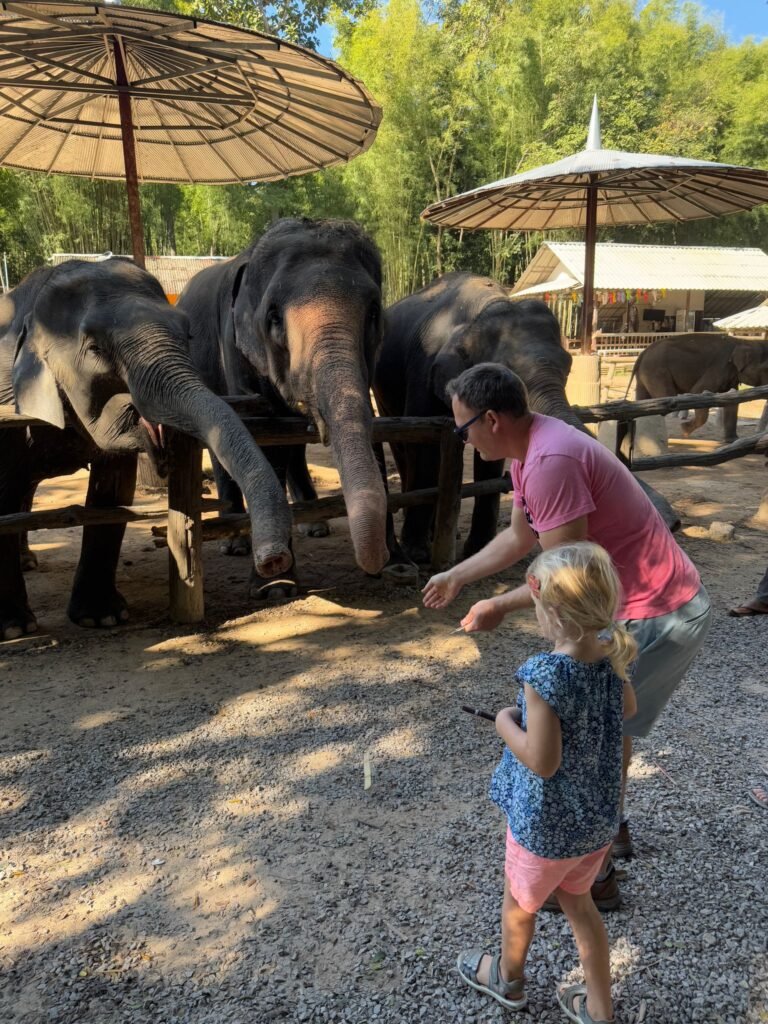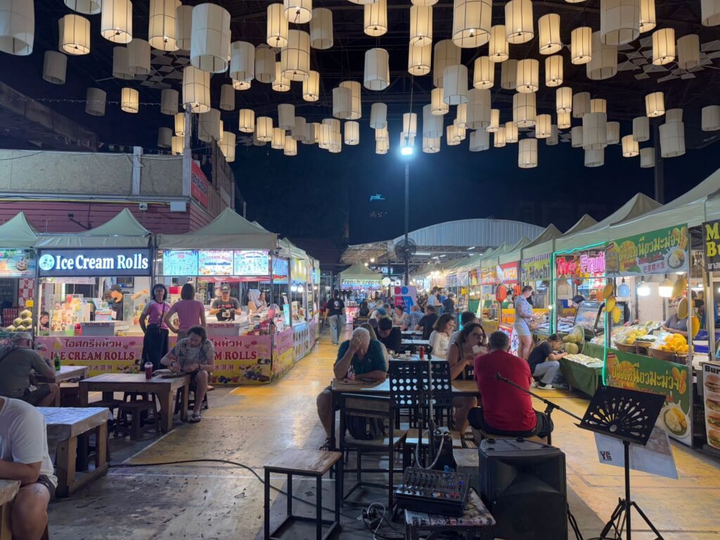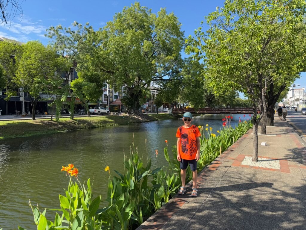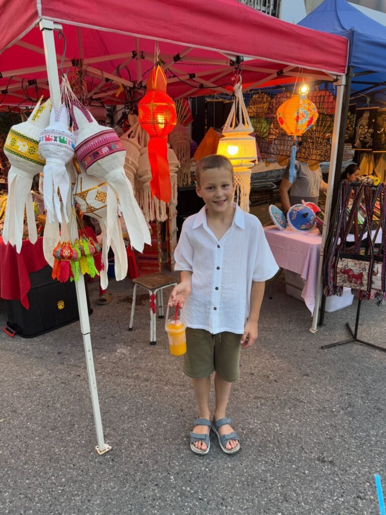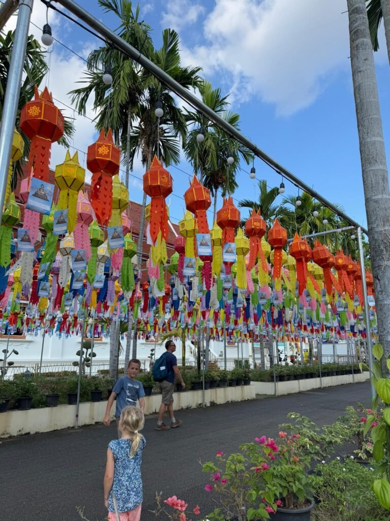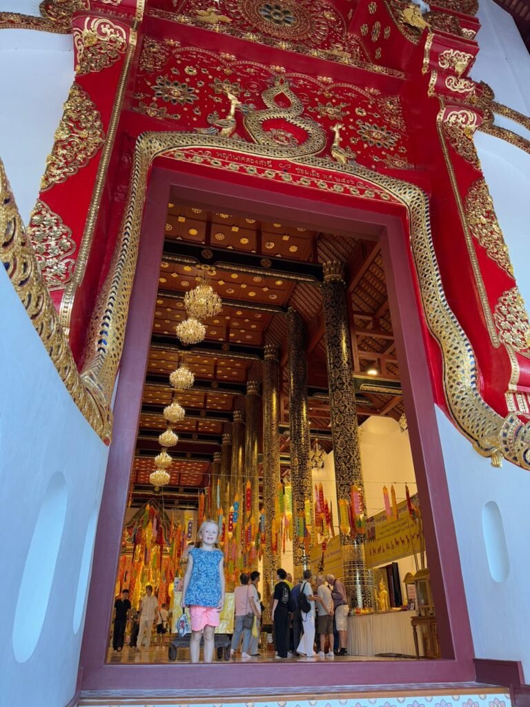 Die ersten Tage verliefen etwas ruhiger als geplant, denn Leonie hatte sich am Ende von Koh Chang noch eine Mittelohrentzündung durch Poolwasser am Ohr eingefangen. Also hieß es für zwei, drei Tage schonen. Zum Glück ging es ihr bald wieder besser, sodass wir doch noch genug Zeit hatten, Chiang Mai kennenzulernen. Die Stadt lebt von ihren vielen Nachtmärkten. An fast jedem Abend findet irgendwo ein Markt statt, mit Essen, Livemusik, Getränkeständen und kleinen Verkaufsständen. Es ist eine angenehme Mischung aus Einheimischen und Besuchern. Einen anderen Nachmittag haben wir die Altstadt erkundet. Wir sind viel gelaufen, haben Tempel besucht und die besondere Stimmung zwischen den alten Mauern und goldenen Pagoden auf uns wirken lassen. Bei rund 30 Grad war das durchaus anstrengend aber sehr schön.