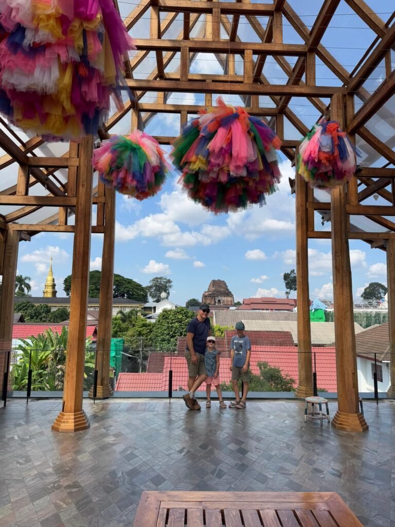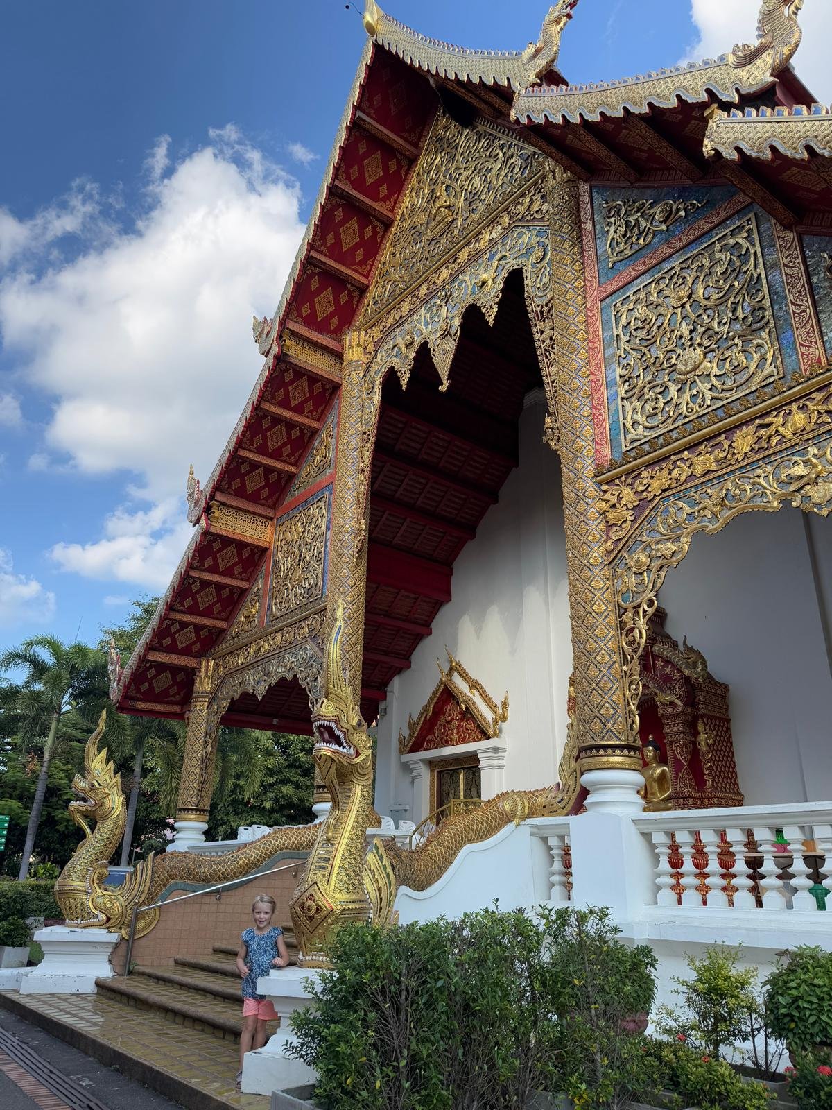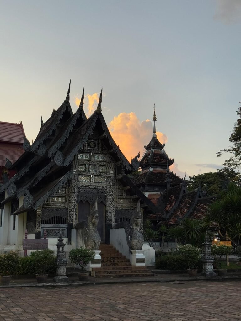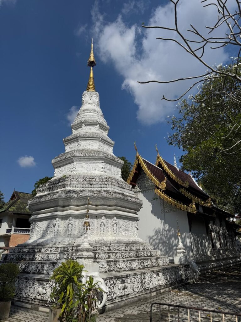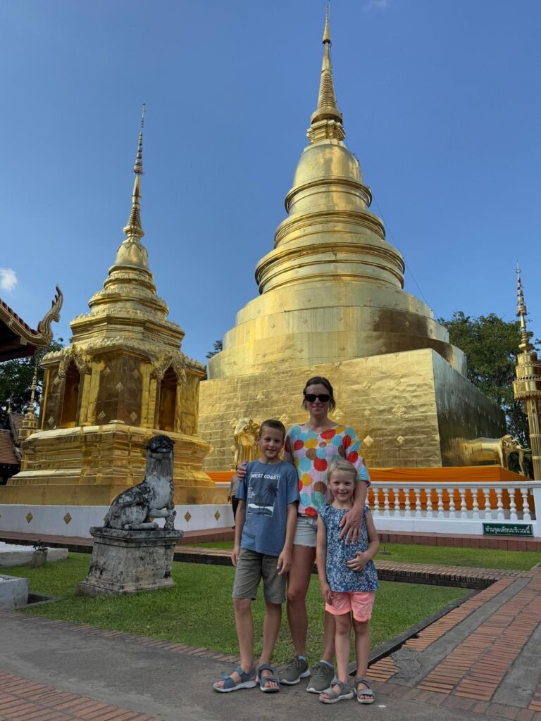 Die ersten Tage verliefen etwas ruhiger als geplant, denn Leonie hatte sich am Ende von Koh Chang noch eine Mittelohrentzündung durch Poolwasser am Ohr eingefangen. Also hieß es für zwei, drei Tage schonen. Zum Glück ging es ihr bald wieder besser, sodass wir doch noch genug Zeit hatten, Chiang Mai kennenzulernen. Die Stadt lebt von ihren vielen Nachtmärkten. An fast jedem Abend findet irgendwo ein Markt statt, mit Essen, Livemusik, Getränkeständen und kleinen Verkaufsständen. Es ist eine angenehme Mischung aus Einheimischen und Besuchern. Einen anderen Nachmittag haben wir die Altstadt erkundet. Wir sind viel gelaufen, haben Tempel besucht und die besondere Stimmung zwischen den alten Mauern und goldenen Pagoden auf uns wirken lassen. Bei rund 30 Grad war das durchaus anstrengend aber sehr schön.