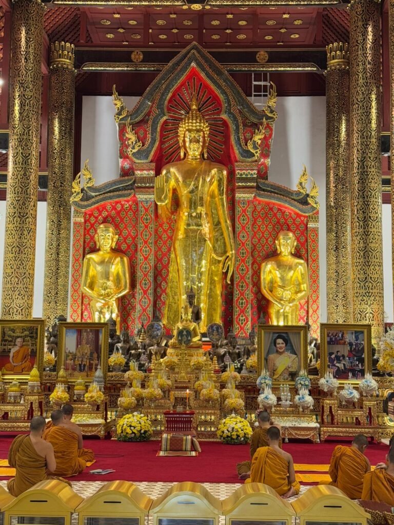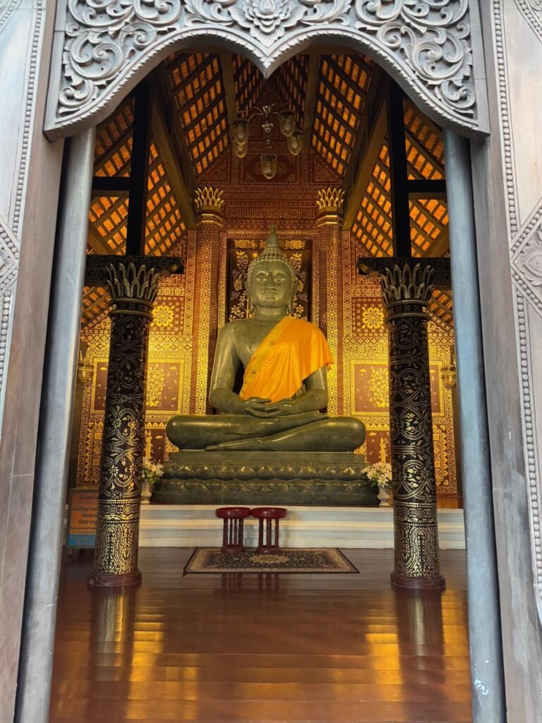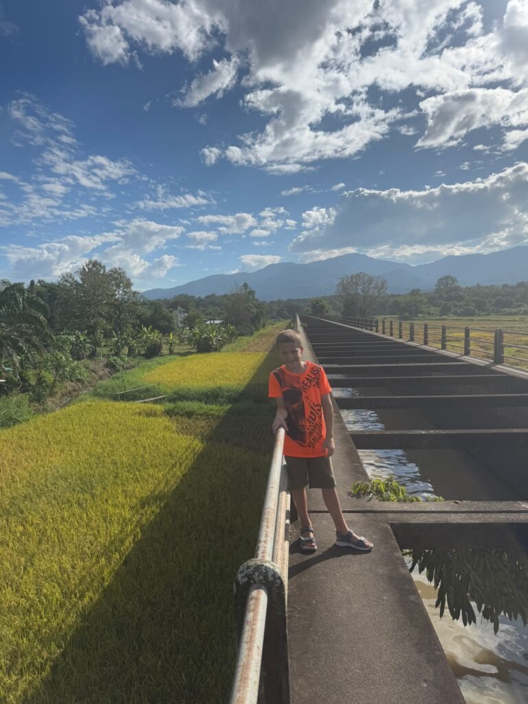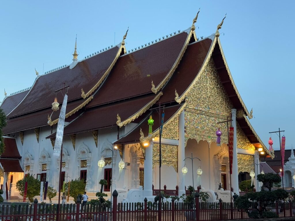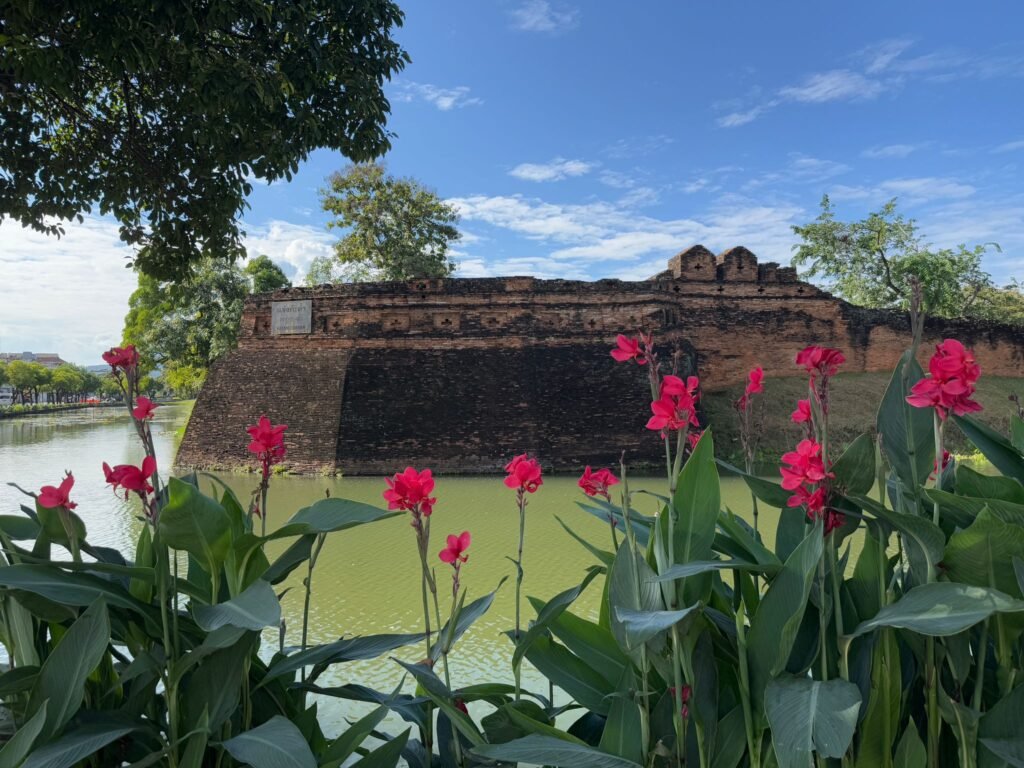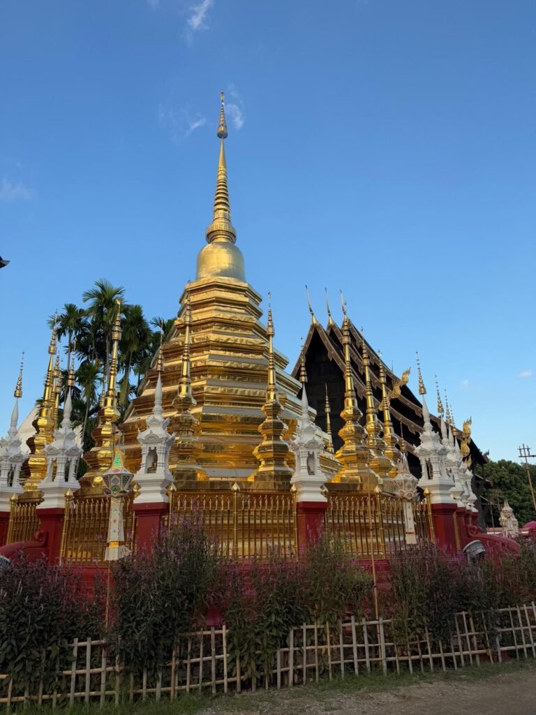 Die ersten Tage verliefen etwas ruhiger als geplant, denn Leonie hatte sich am Ende von Koh Chang noch eine Mittelohrentzündung durch Poolwasser am Ohr eingefangen. Also hieß es für zwei, drei Tage schonen. Zum Glück ging es ihr bald wieder besser, sodass wir doch noch genug Zeit hatten, Chiang Mai kennenzulernen. Die Stadt lebt von ihren vielen Nachtmärkten. An fast jedem Abend findet irgendwo ein Markt statt, mit Essen, Livemusik, Getränkeständen und kleinen Verkaufsständen. Es ist eine angenehme Mischung aus Einheimischen und Besuchern. Einen anderen Nachmittag haben wir die Altstadt erkundet. Wir sind viel gelaufen, haben Tempel besucht und die besondere Stimmung zwischen den alten Mauern und goldenen Pagoden auf uns wirken lassen. Bei rund 30 Grad war das durchaus anstrengend aber sehr schön.
