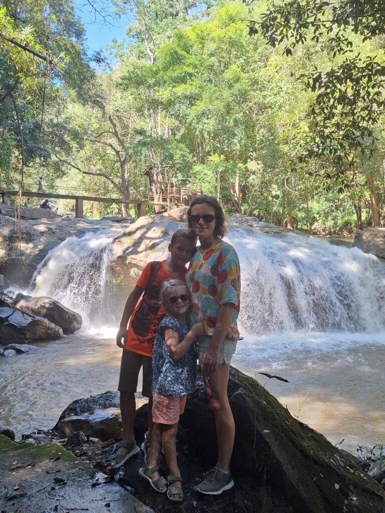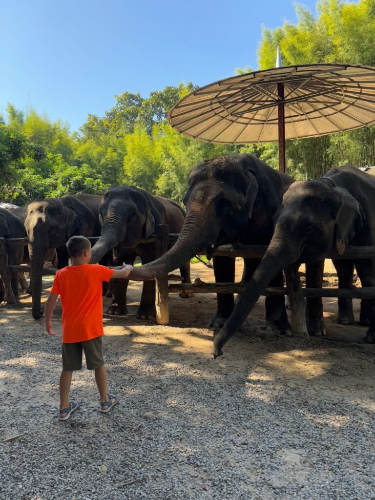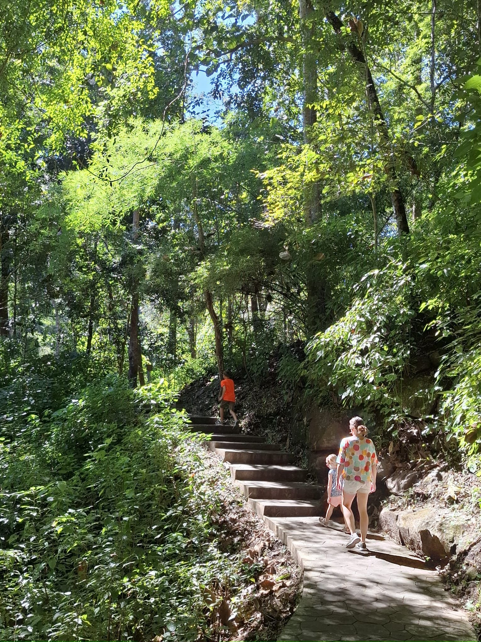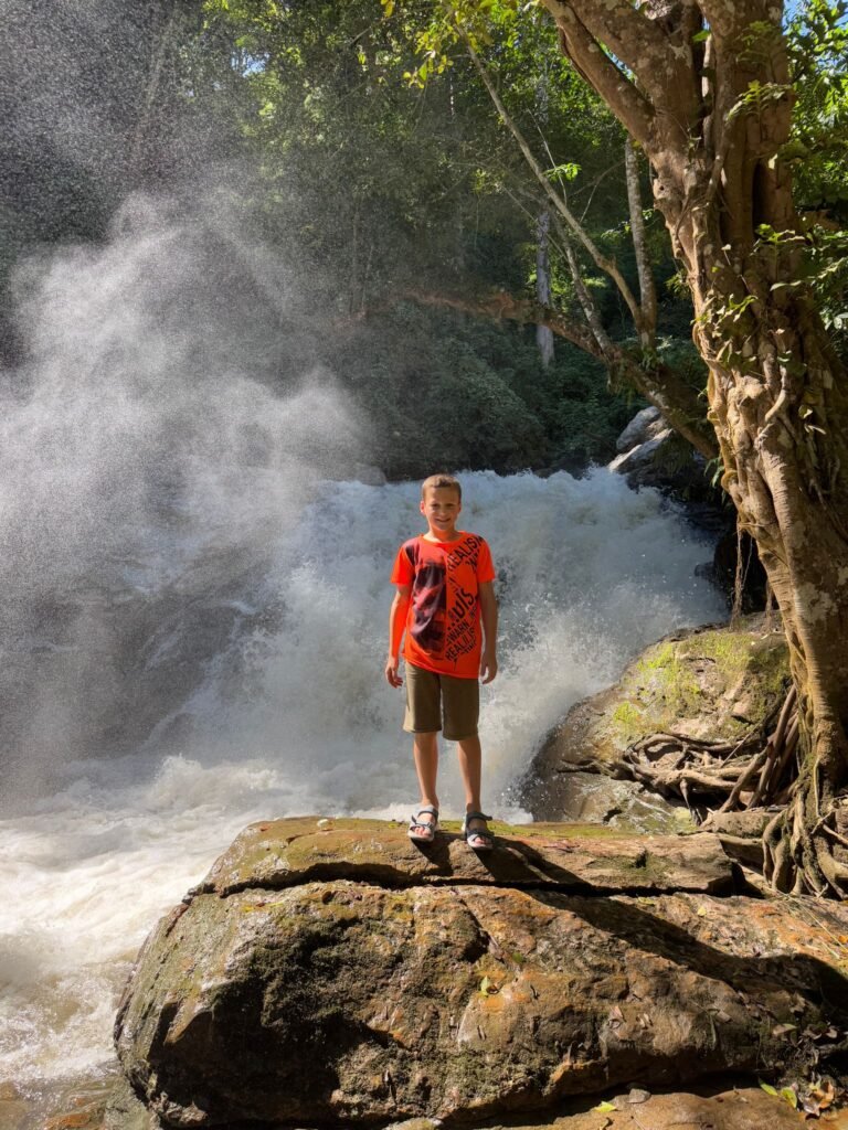 Am Sonntag haben wir mit einem Mietwagen das Umland erkundet. Unter anderem haben wir ein Elefantencamp besucht, in dem wir die Tiere füttern und ihnen ganz nah kommen konnten. Für die Kinder ein beeindruckendes Erlebnis. Danach ging es weiter zu einem zehnstufigen Wasserfall, wo wir eine kleine Dschungelwanderung unternommen haben. Im satten Grün des Nordens einzutauchen ist jedes Mal etwas Besonderes.
