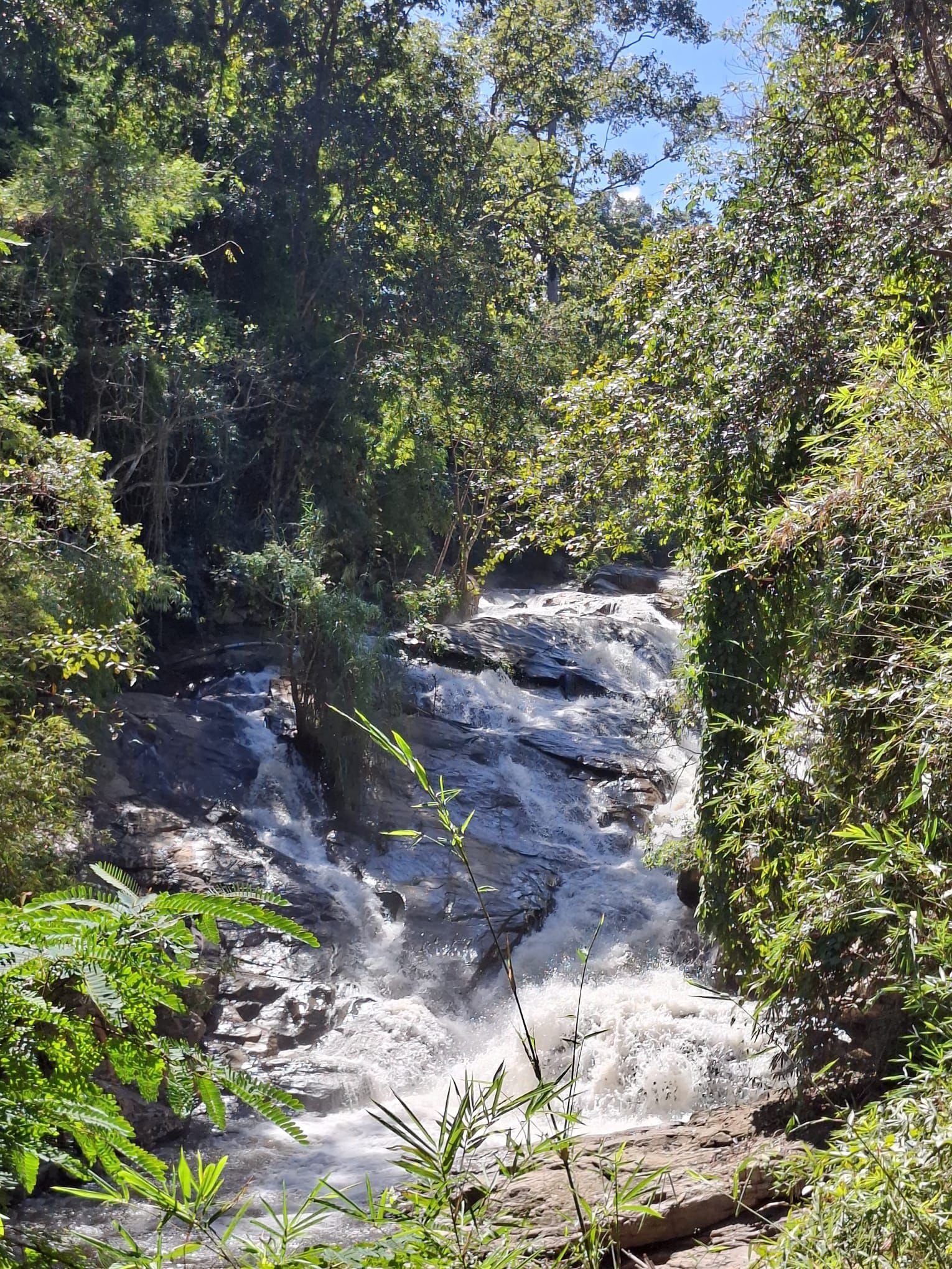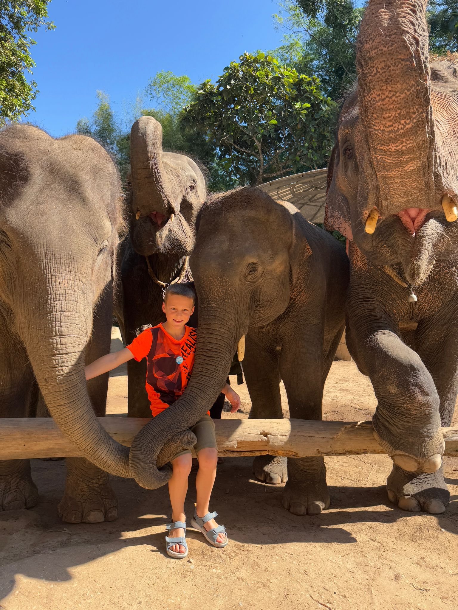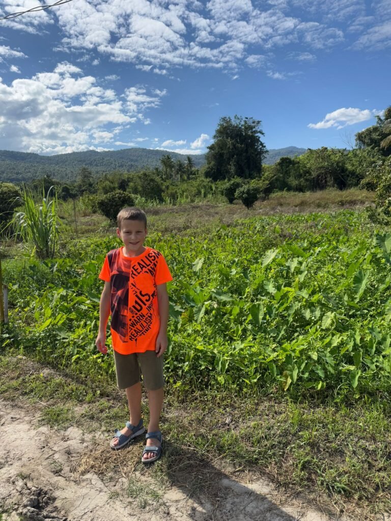 Am Sonntag haben wir mit einem Mietwagen das Umland erkundet. Unter anderem haben wir ein Elefantencamp besucht, in dem wir die Tiere füttern und ihnen ganz nah kommen konnten. Für die Kinder ein beeindruckendes Erlebnis. Danach ging es weiter zu einem zehnstufigen Wasserfall, wo wir eine kleine Dschungelwanderung unternommen haben. Im satten Grün des Nordens einzutauchen ist jedes Mal etwas Besonderes.