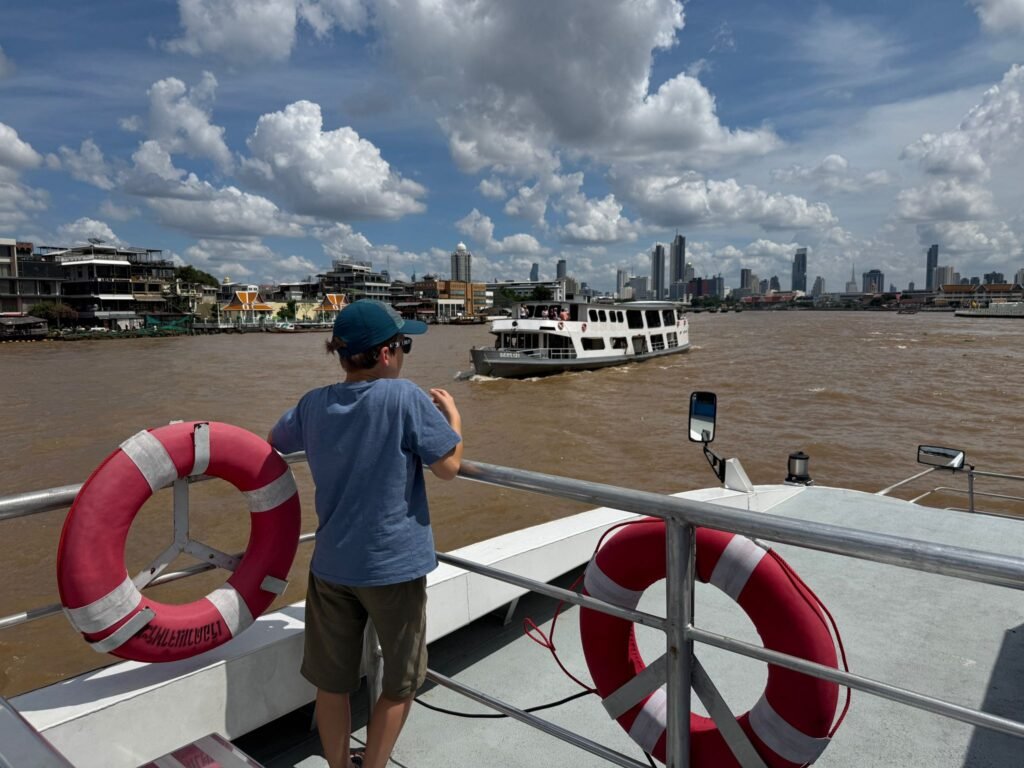 Mit der Fähre fahren wir über den Fluss Richtung Chinatown. Auf dem Boot bestaunen die Kinder die Skyline – glitzernde Hochhäuser, Tempelspitzen, Boote in allen Größen – so etwas haben sie noch nie gesehen. „Ganz anders als in Waldenau“, meint Kilean.