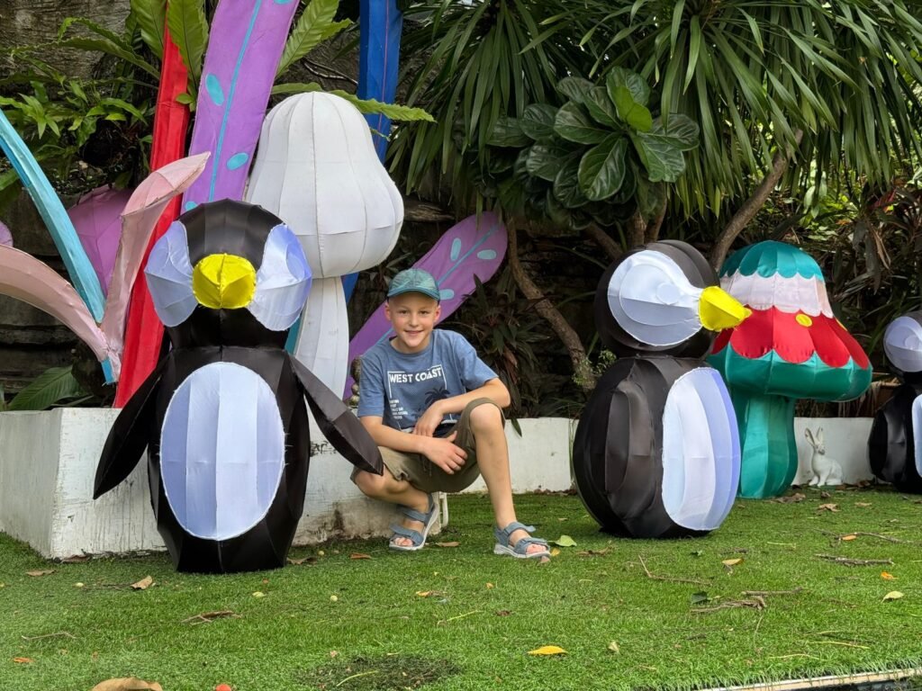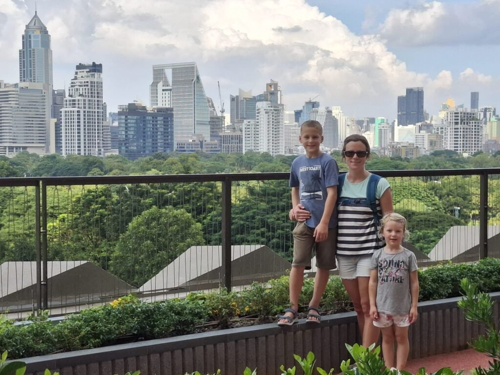 Die Stimmung ist aufgeregt und fröhlich. Mira und die Kinder können es kaum erwarten, das große Abenteuer zu beginnen. Von Hamburg nach Zürich läuft noch alles entspannt. Doch auf dem Flug nach Abu Dhabi versucht jeder, ein bisschen Schlaf zu finden – mit mäßigem Erfolg. Schließlich, im letzten Abschnitt nach Bangkok, ist die Müdigkeit groß, aber immerhin schaffen wir es, zwischendurch ein paar Minuten die Augen zuzumachen. In Bangkok angekommen, draußen sind es 30 Grad, die Luft ist warm und feucht, wir sind plötzlich wirklich da und sind überrascht, dass es doch so schnell ging. Anstelle von Uber gibt es hier Grab, und schon eine halbe Stunde später stehen wir vor unserem Hotel.