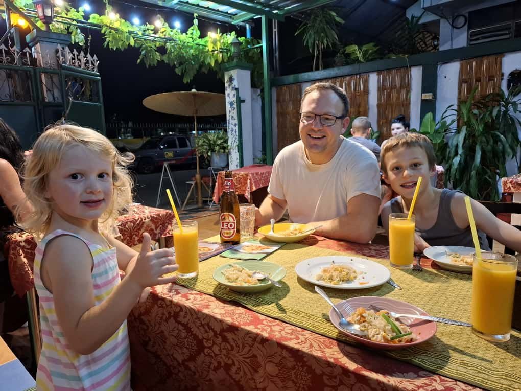 Zum Abschluss kehren wir in unser Lieblingsrestaurant in der Nähe des Hotels ein. Bekanntes Essen, vertraute Gesichter, kalte Getränke – ein bisschen wie zu Hause, man fühlt sich schon angekommen.