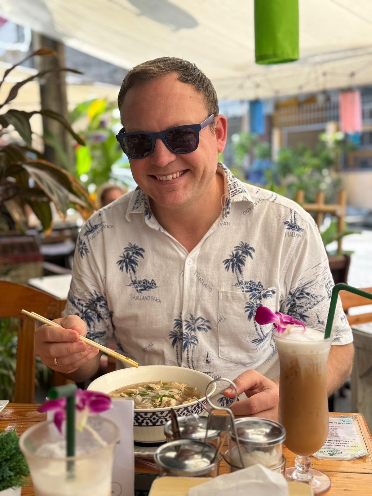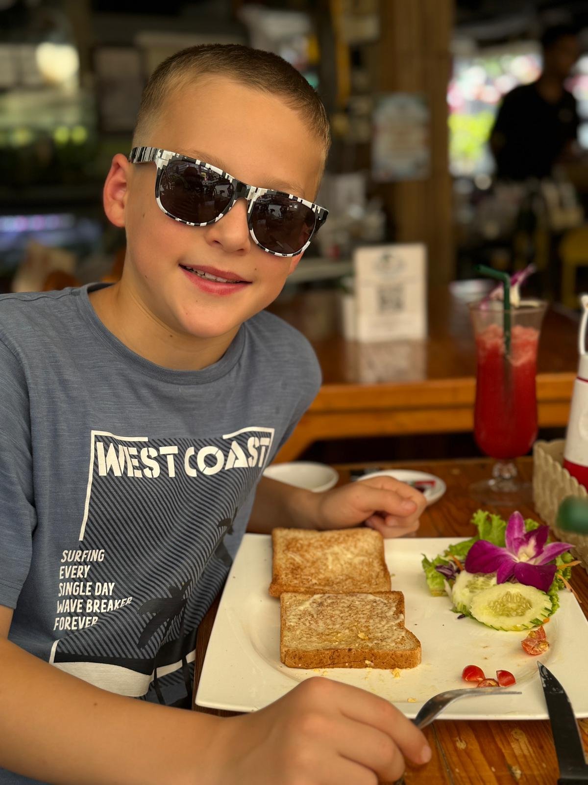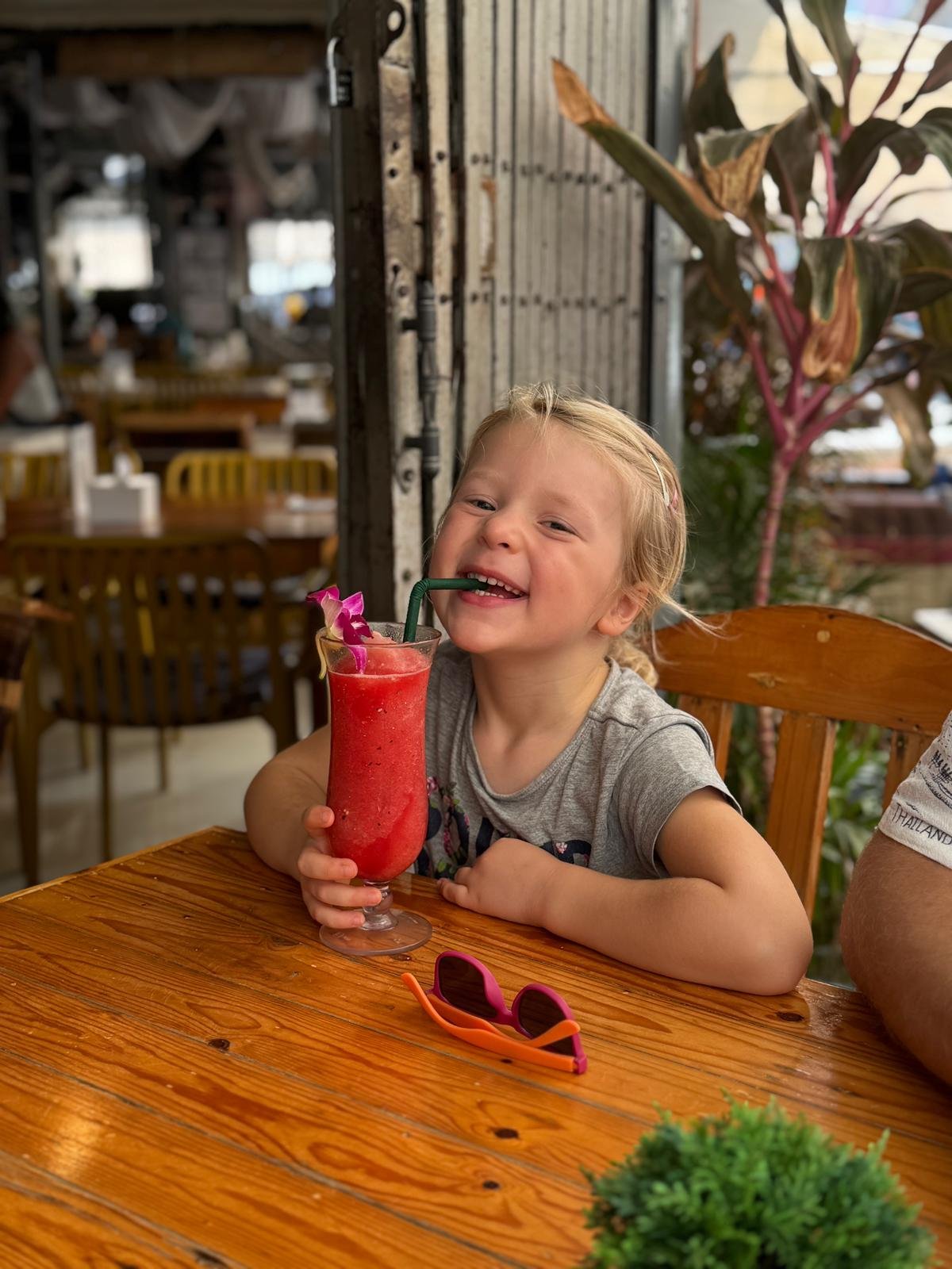 Am nächsten Morgen schlafen wir erst einmal aus – bis 9 Uhr. Das Frühstück in Thailand überrascht uns: Statt Brötchen und Marmelade gibt es Nudelsuppe, gebratenen Reis und andere herzhafte Gerichte. Ungewohnt, aber köstlich. Zum Glück gibt es immer frische Säfte und Smoothies, die den Start in den Tag leichter machen.