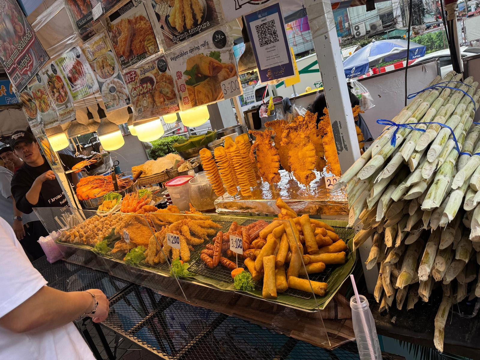 Als alles erledigt ist, zieht es uns raus: Wir fahren zur berühmten Kho San Road, schlendern durch die Gassen und genießen Streetfood. Auf dem Markt kaufen wir Kleinigkeiten, probieren neue Snacks und beobachten das bunte Treiben.