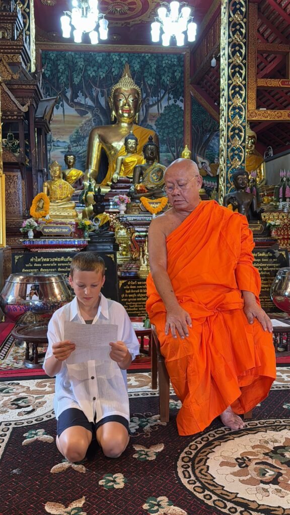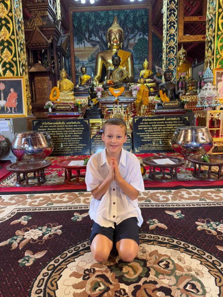 Besonders stolz sind wir darauf, wie gut unsere Kinder mit dieser neuen Lebenssituation umgehen. Fremdes Land, fremde Sprache, andere Abläufe – und doch wachsen sie jeden Tag ein Stück über sich hinaus. Kilean hat in dieser Woche sogar ein Referat über buddhistische Mönche vorbereitet und es bei YouTube für seine Klasse hochgeladen.