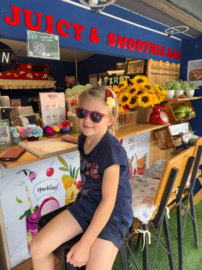 Ebenso das Telefonieren! Auch das ist eine kleine Kunst. Hier in Thailand haben Kilean und Leonie viele Gelegenheiten, mit Familie und Freunden zu sprechen. Kilean ist inzwischen richtig gut darin geworden, Fragen zu stellen und ein Gespräch am Laufen zu halten. Man merkt: Man wächst mit neuen Herausforderungen und das Leben hier ist voll davon.