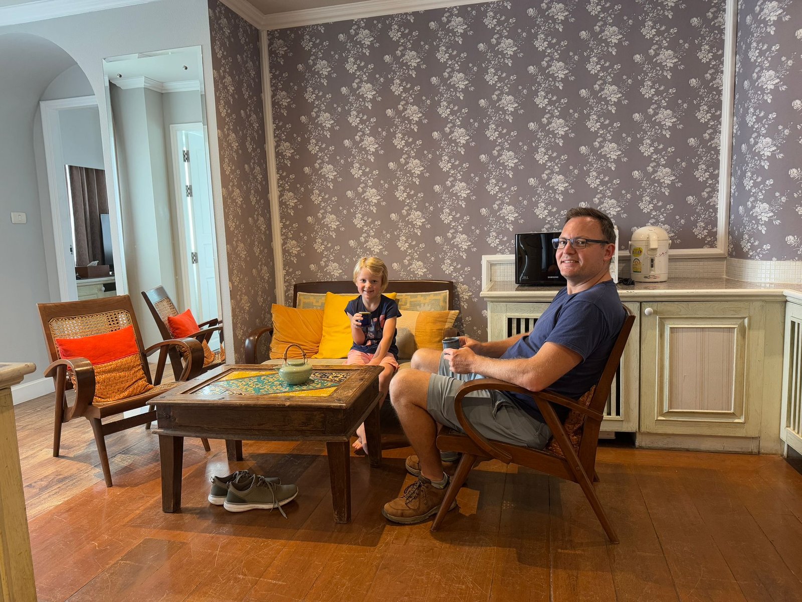 Natürlich läuft nicht immer alles glatt. Gestern ist Kilean mutig eine Rolltreppe hochgefahren – aber oben gab es keine Rolltreppe zurück nach unten. Also suchte er den Weg durch einen Laden, über eine Brücke und durch ein Treppenhaus. Dabei hat er sich kurz verlaufen und den Rückweg nicht mehr gefunden. Nach ein paar Minuten kam er mit Tränchen zurück, sichtlich erleichtert, uns wiederzusehen. Wir konnten ihn zwar fast die ganze Zeit beobachten, aber er selbst hatte das Gefühl, alleine zu sein – und das war eine große Erfahrung für ihn.