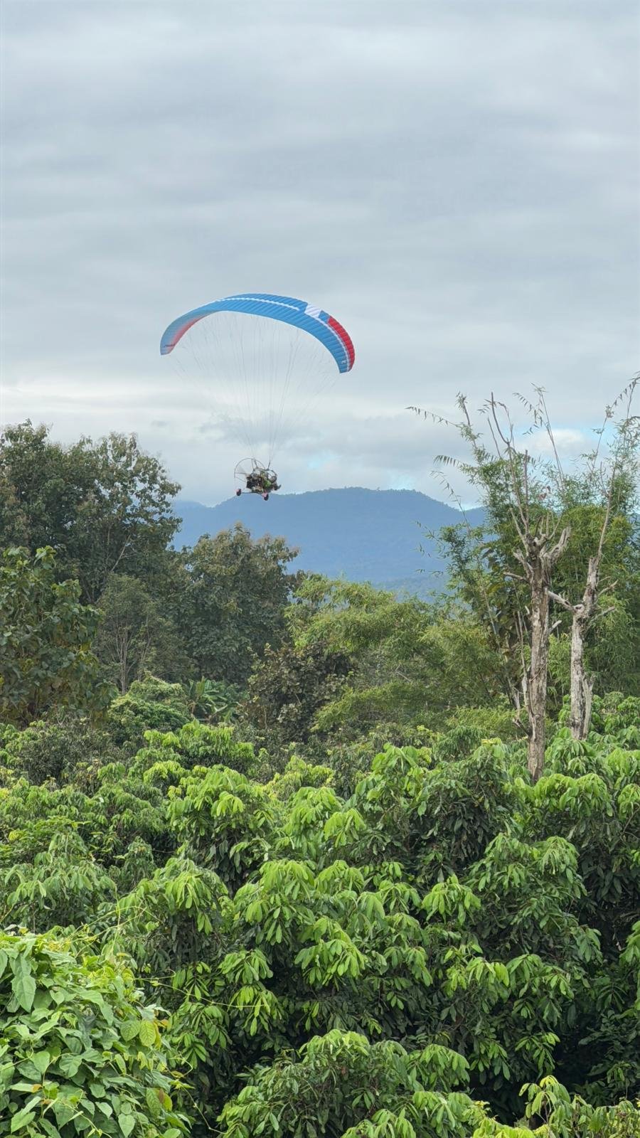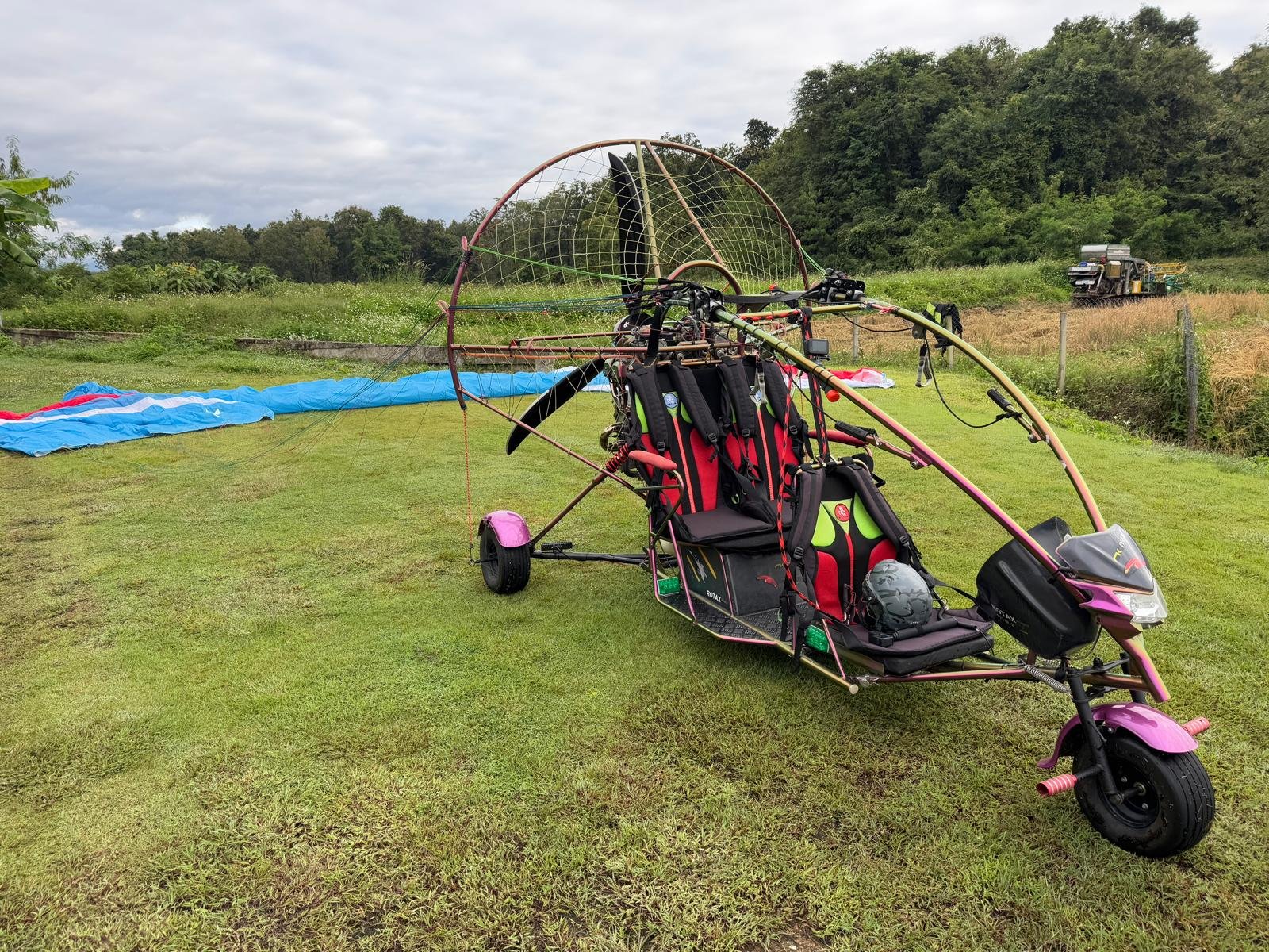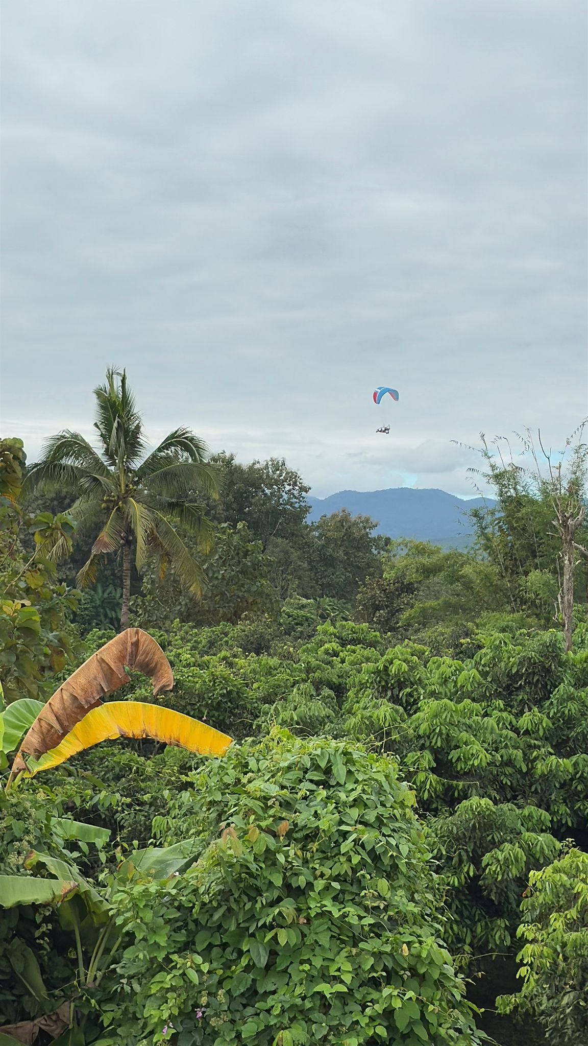 Während der Handyreparatur haben wir Joe kennengelernt, einen Auswanderer aus Schweden. Er kam vor 25 Jahren nach Thailand, hat hier seine Familie gegründet und wirkt so zufrieden, als wäre er schon immer in Chiang Mai zu Hause gewesen. Er hat uns erzählt, dass er Motorparagliding-Flüge anbietet – und natürlich war ich sofort neugierig. Das war genau die Art Abenteuer, die man nicht planen kann, die einem aber einfach zufliegen.